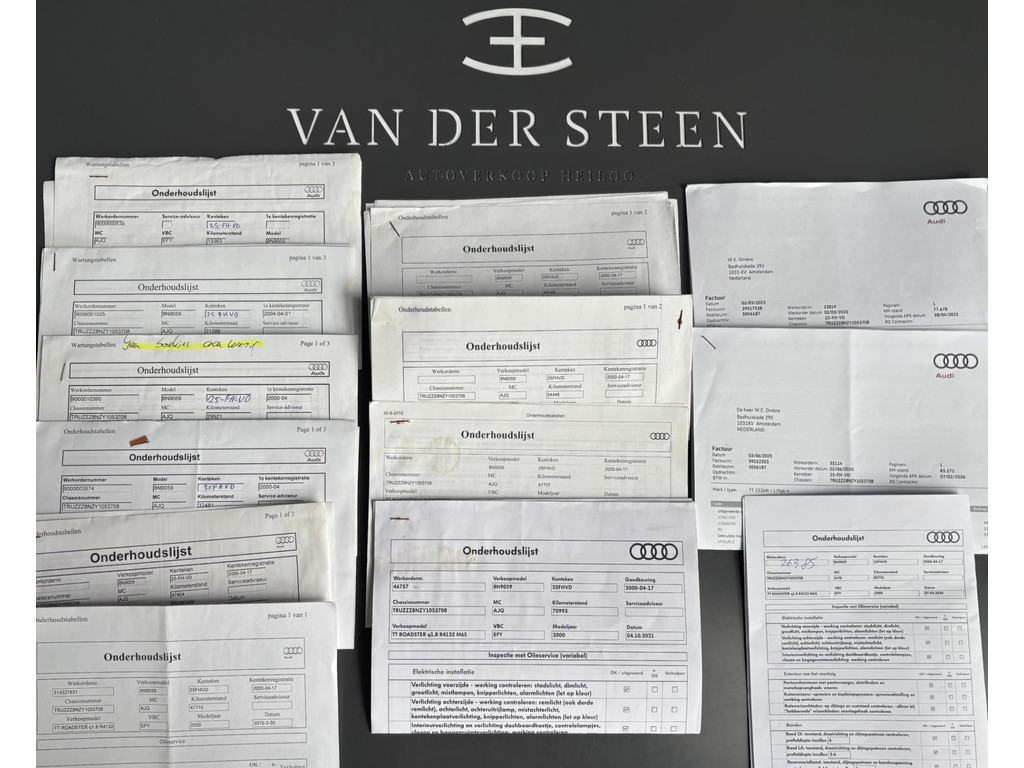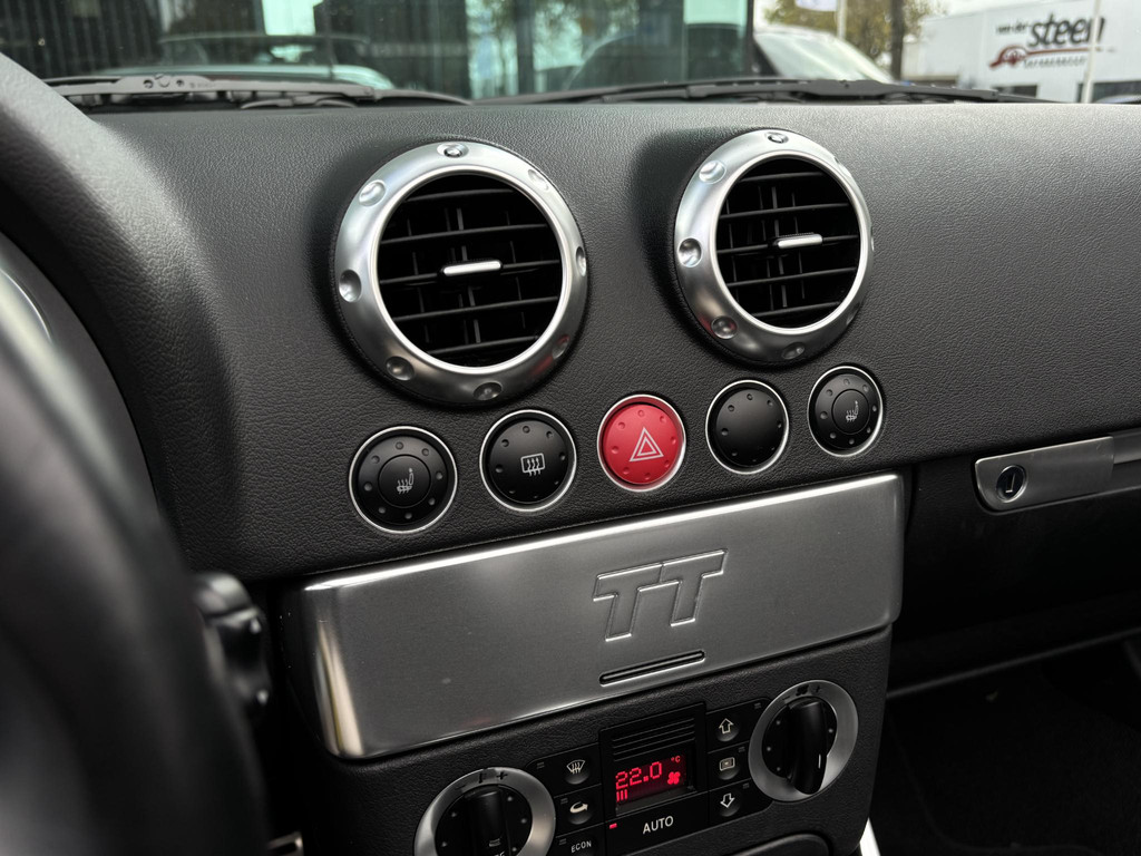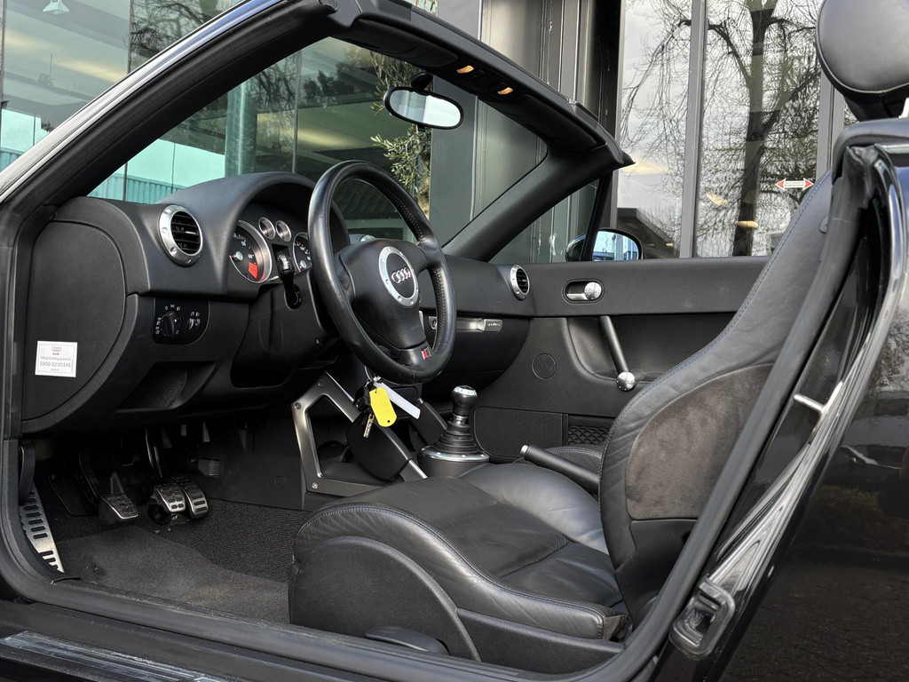 Nette Audi TT Roadster 1.8 Quattro. Auto heeft 25 jaar binnen gestaan en volledig aantoonbaar Dealer Onderhouden (laatste beurt 500km). Alle documentatie aanwezig zoals de aankoopfactuur in het jaar 2000. Af fabriek uitgevoerd met elektrische bedienbare glazen windscherm om de windcirculatie in het interieur te reduceren.