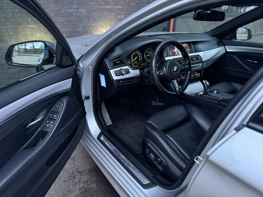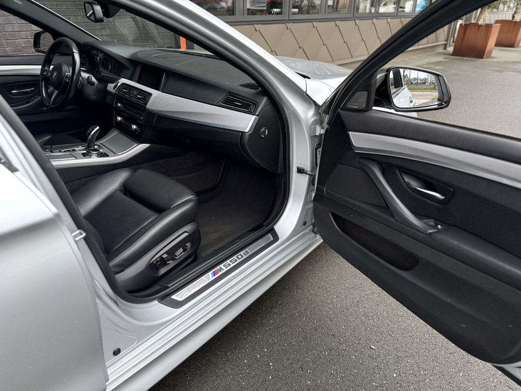 Een topklasse Touring voor de fijnproevers. Deze M550xd is fascinerend luxueus en valt op door het doordachte samenspel van vooruitstrevende techniek, hoogwaardige materialen en sportieve elementen. De F11-generatie belichaamt de essentie van het rijplezier waar BMW befaamd om is, met dank aan een vorstelijk comfort, het geruisloze schakelkarakter van de 8-traps ZF-automaat en de sterke 3-liter met liefst drie turbo's met 381pk en 740Nm koppel. Dat zijn indrukwekkende specificaties voor een 6-cilinder diesel-motor; gelukkig is het geheel optimaal op elkaar afgestemd door de M Performance-divisie van BMW en permanente vierwielaandrijving. Dit exemplaar is, los van een hele goede technische- en optische conditie, voorzien van talloze relevante opties als de 18-voudige comfortstoelen met zitverlenging, extra zijdelingse steun, stoelverwarming én lendensteun, een elektrische trekhaak, Head-Up display, adaptieve Cruise Control en het uitgebreide Navigatie Professional-systeem met allerlei mogelijkheden qua connectiviteit.