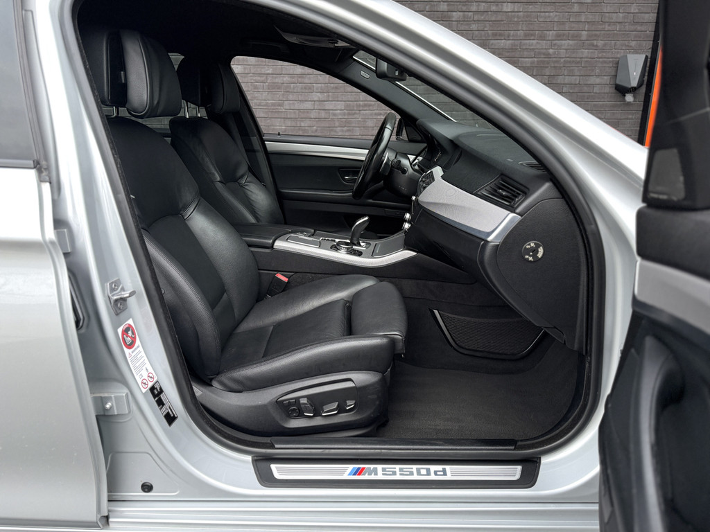 A top-class Touring for the connoisseur. This M550xd is captivatingly luxurious and stands out for its sophisticated interplay of progressive technology, high-quality materials, and sporty elements. The F11 generation embodies the essence of BMW's renowned driving pleasure, thanks to its regal comfort, the silent shifting of the 8-speed ZF automatic transmission, and the powerful 3-liter engine with no fewer than three turbochargers producing 381 hp and 740 Nm of torque. These are impressive specifications for a 6-cylinder diesel engine; fortunately, everything is optimally coordinated by BMW's M Performance division and permanent all-wheel drive. Besides being in excellent technical and visual condition, this example is equipped with numerous relevant options, such as 18-way comfort seats with seat extension, extra lateral support, seat heating and lumbar support, an electric tow bar, Head-Up Display, adaptive Cruise Control, and the comprehensive Navigation Professional system with a wide range of connectivity options. The Glacier Silver metallic paint creates an imposing and stylish appearance.