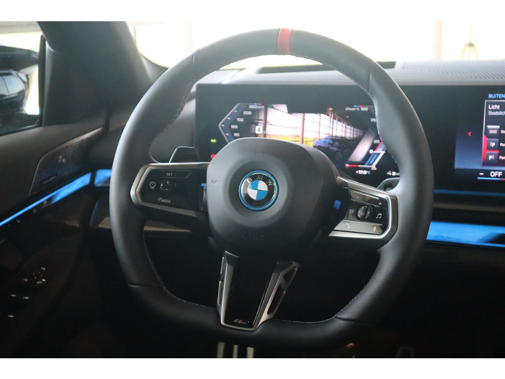 Valt u voor de milieuvriendelijke aandrijftechniek? Of voor de comfortabele rijbeleving? Met de elektrisch aangedreven BMW i5 hoeft u niet te kiezen. Gas geven is er met de elektromotor niet meer bij. Stil snelheid maken wel! Deze auto levert de ultieme rijervaring met eersteklas functies zoals stoelverwarming, een verwarmbare achterbank en een verwarmbaar stuur. Elke rit de perfecte zit met de heerlijke comfortstoelen. De bagageruimte is toegankelijk via een comfortverhogende elektrische achterklep. Wat een heerlijk ruim gevoel en zoveel licht geeft dat glazen panoramadak! Tot de uitrusting behoren ook 21 inch lichtmetalen velgen, LED-koplampen, adaptief dempingsysteem, donker getint glas achter, LED-achterlichten en verstelbare lendensteunen.