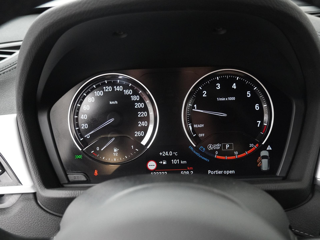Zoals u mag verwachten van deze BMW X1 is hij uitgerust met een reeks aan actieve veiligheidssystemen. In het instrumentarium ziet u tijdens de rit ook de belangrijkste verkeersborden aangegeven, die de auto automatisch voor u leest. Het forward collision warning-systeem is constant alert en detecteert via sensor de afstand tot voorliggers. Wordt die te klein, dan volgt een automatische waarschuwing. In deze BMW vinden we verder een head-up display, hill hold functie, brake assist en bandenspanningcontrolesysteem.