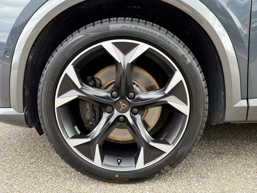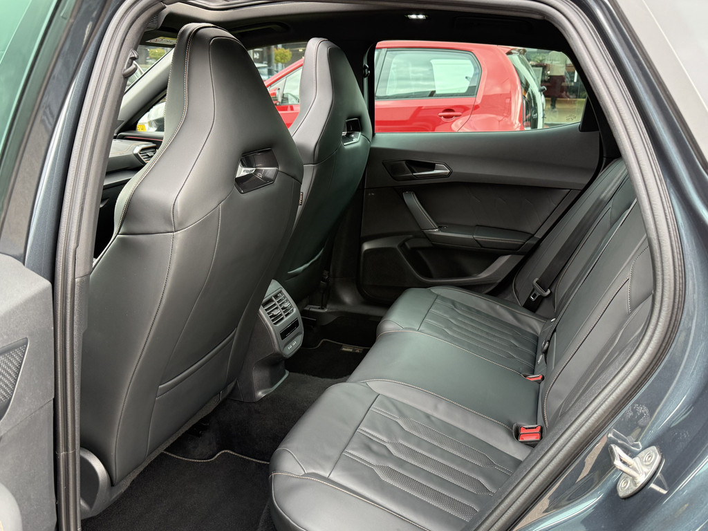 Deze CUPRA Formentor oogt, klinkt en rijdt al heel ervaren, maar is nog hartstikke jong. Met alle actuele techniek en rijkwaliteiten die je van een bijna-nieuwe auto mag verwachten. Uitstekende prestaties op de weg dankzij de verbrandingsmotor én elektromotor. En héél vriendelijk voor het milieu en portemonnee! Het interieur ademt luxe door de leren bekleding. Koude start? Niet met de verwarmbare voorstoelen! Opvallend zijn de stoere sportstoelen, die zorgen voor een onwrikbare zit in de scherpe bochten. Wat een licht geeft dat glazen elektrisch bedienbare panoramadak. De elektrische achterklep opent met een druk op de knop, zodat jij gemakkelijk toegang heeft tot de bagageruimte. De slimme koplampen gebruiken de allernieuwste matrix LED-verlichting. Altijd maximaal zicht, nooit verblinding bij de tegenligger. Tot de uitrusting behoren ook 19 inch lichtmetalen velgen, adaptief dempingsysteem, donker getint glas achter, in delen neerklapbare achterbank, LED-achterlichten en verstelbare lendensteunen.