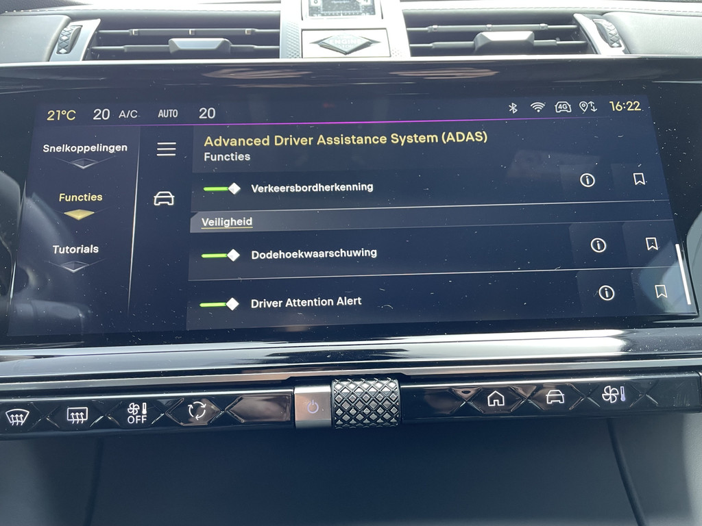 Het eigentijdse interieur wordt natuurlijk helemaal volmaakt met het digitale dashboard. Kinderfietsje niet gezien bij het inparkeren? Dat gebeurt u nooit meer. Daar zorgt de achteruitrijcamera wel voor! Als u de adaptive cruise control inschakelt, regelt de auto zelf de snelheid en de afstand tot de auto voor u. Een veiligheidsverhogende optie is de ingebouwde spraakbediening. Terwijl u uw ogen op de weg houdt, bedient u de auto met uw stem. De conditie van deze auto is 24/7 inzichtelijk dankzij Connected Services. Deze DS is voorzien van full map navigatiesysteem, automatische airconditioning, regensensor, keyless entry, automatisch dimmende buitenspiegels en lederen stuur.