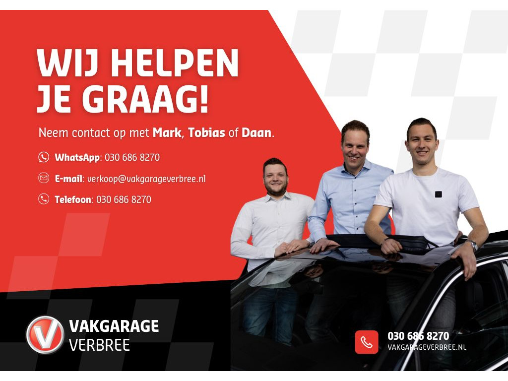 Fabrikant: Vakgarage Verbree IJsselstein Panoven 70 3401RB IJSSELSTEIN UT, NL 0306868270 http://www.vakgarageverbree-ijsselstein.nl verkoop@vakgarageverbree.nlWat leuk dat u deze auto heeft gevonden! Wij zijn Vakgarage Verbree; als familiebedrijf combineren wij de voordelen van een moderne autodealer met de persoonlijke benadering van een dorpsgarage. Uw adviseurs Tobias, Mark, Swen en Daan vertellen u graag meer. Bereikbaar via telefoon: 030-6868277 of WhatsApp: 030-6868270.