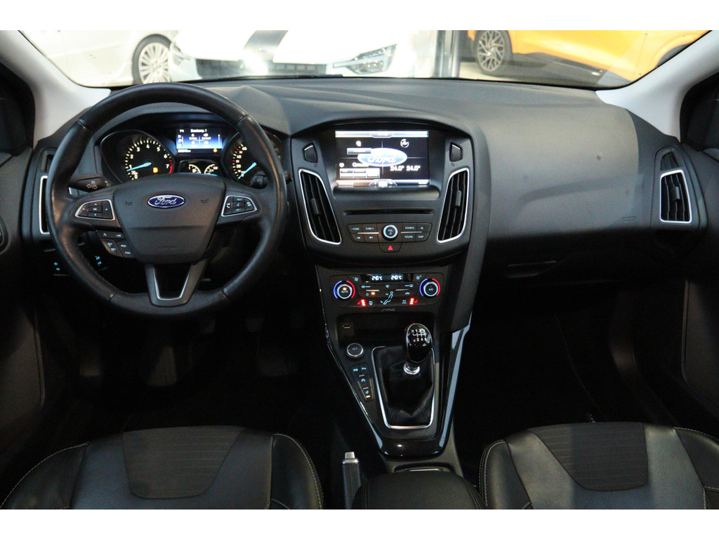 Origineel Nederlands geleverde Ford Focus 1.0 Titanium Edition. Diverse onderhoudsfacturen aanwezig. Deze auto is o.a. voorzien van: cruise control, climate control, Xenon koplampen, parkeersensoren voor en achter, licht metalen velgen,  parkeerassistent, bluetooth telefoonverbinding, voorruitverwarming, stuur en stoelverwarming.