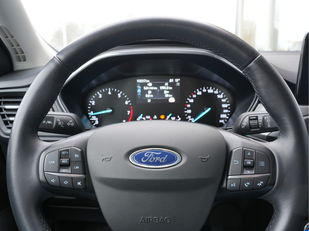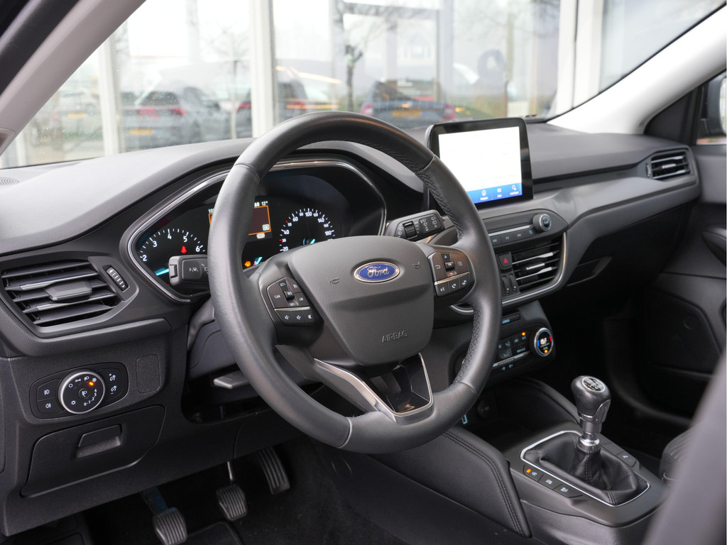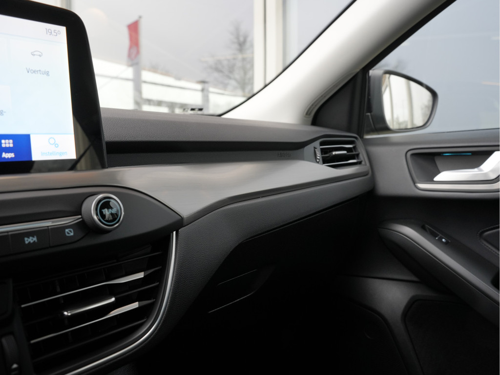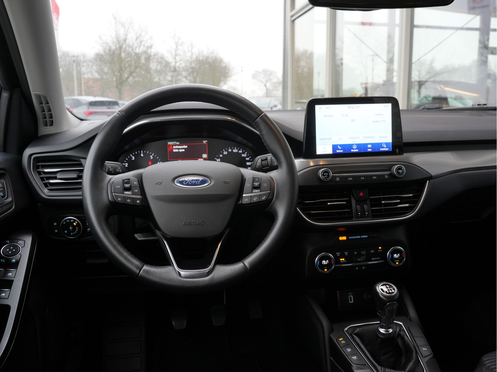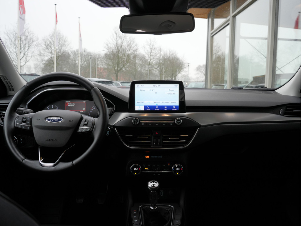 De ingebouwde Connected Services vertellen u via de app alles over de status van de auto. Locatie, onderhoudsstatus, brandstofpeil en nog veel meer! Een goede veiligheidsvoorziening is de spraakbediening en stuurbediening voor belangrijke functies. De auto is natuurlijk voorzien van een full map navigatiesysteem en het audiosysteem biedt glasheldere geluidskwaliteit dankzij DAB-ontvangst. Ook over uw schouder ziet u onderweg niet alles wat er aan de achterzijde gebeurt. Daarom heeft deze Ford Focus een achteropkomend verkeer waarschuwing. Dankzij automatische airconditioning is het interieur behaaglijk warm of verfrissend koel. Parkeerplekken worden er niet ruimer op. Maar met de aanwezige parkeersensoren krijgt u deze Ford Focus zonder problemen op z'n plaats. Natuurlijk behoren WIFI-hotspot, regensensor, cruise control, keyless entry, automatisch dimmende binnenspiegel en lederen stuur ook tot de uitrusting van deze complete auto.