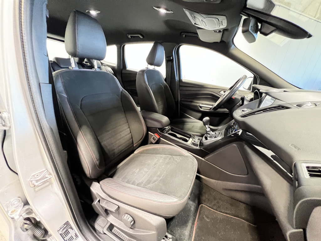 Hij zorgt voor een ontspannen rijervaring, deze Ford Kuga. Het is een dealeronderhouden auto uit 2019, op de teller staat een kilometerstand van 71438. Met zijn benzinemotor en handgeschakelde zesversnellingsbak is dit een prima auto voor nog vele kilometers. Natuurlijk zijn de sportstoelen super functioneel als het rechterpedaal ingetrapt wordt. Maar ook voor het uiterlijk doen ze veel! Bij de uitrusting van deze Ford horen onder meer 18 inch lichtmetalen velgen, sportonderstel, halflederen bekleding, LED-dagrijverlichting, in delen neerklapbare achterbank en verstelbare lendensteunen.