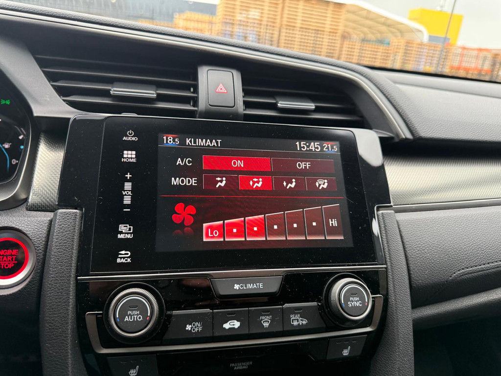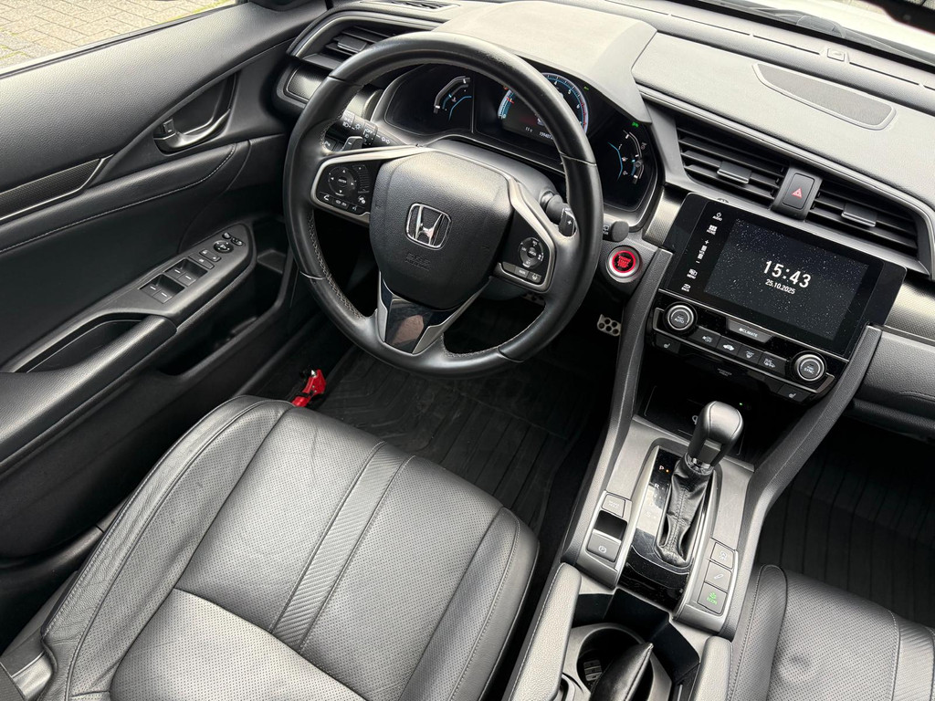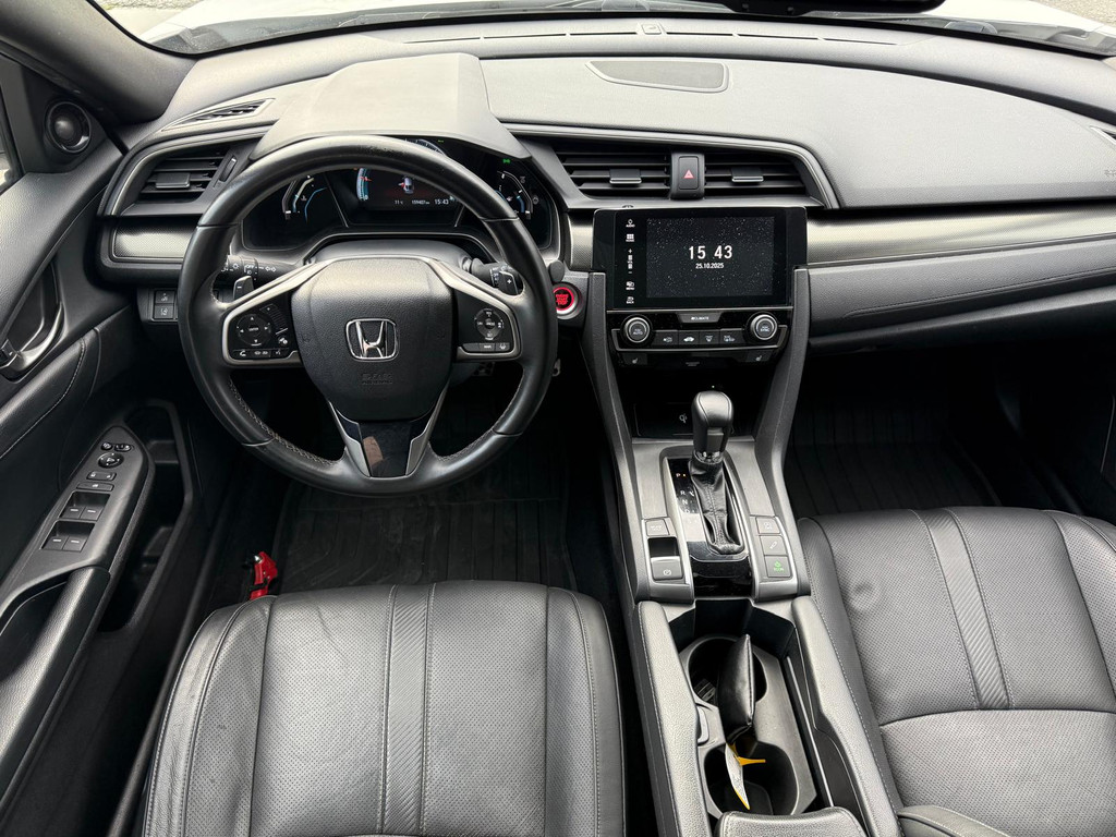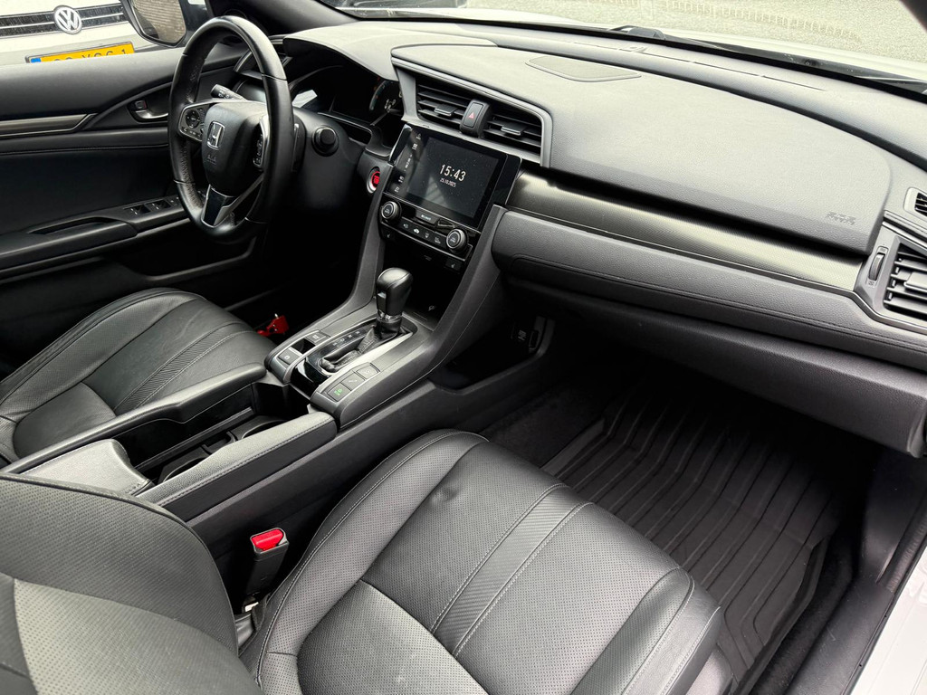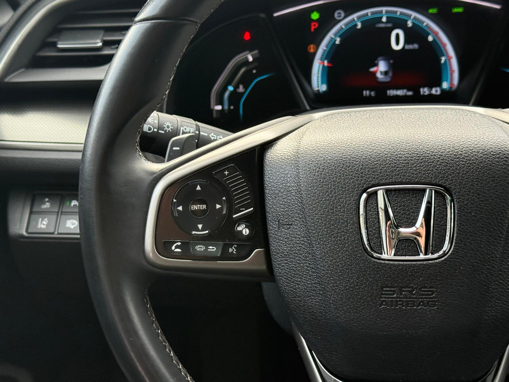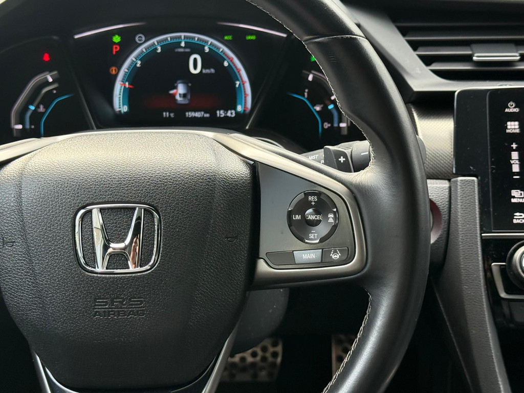 Kinderfietsje niet gezien bij het inparkeren? Dat gebeurt u nooit meer. Daar zorgt de achteruitrijcamera wel voor! Adaptive cruise control houdt de ingestelde snelheid vast en houdt automatisch afstand tot uw voorligger. De geluidskwaliteit aan boord is 'next level' dankzij het high performance audiosysteem. Selecteer uw reisbestemming en het full map navigatiesysteem brengt u snel waar u moet zijn. Aan boord van deze Honda Civic is een achteropkomend verkeer waarschuwing voor extra veiligheid. Wat u ook in deze auto kunt vinden zijn electronic climate control, schakelpaddles aan het stuur, DAB ontvangst, regensensor, keyless entry en automatisch dimmende binnenspiegel.