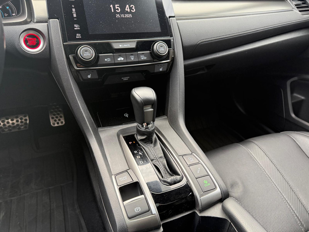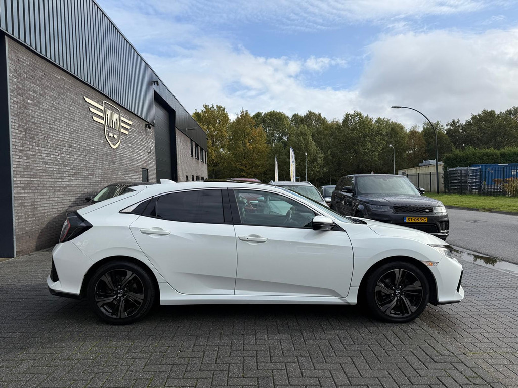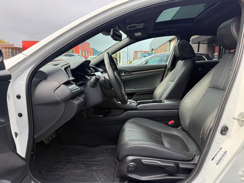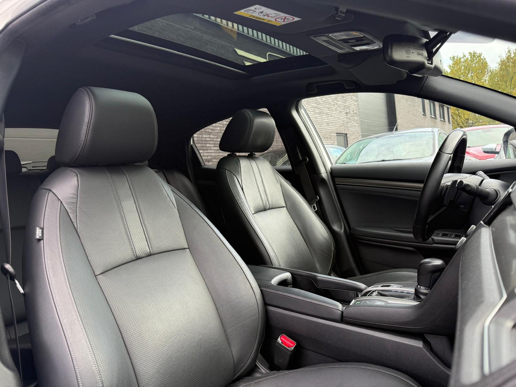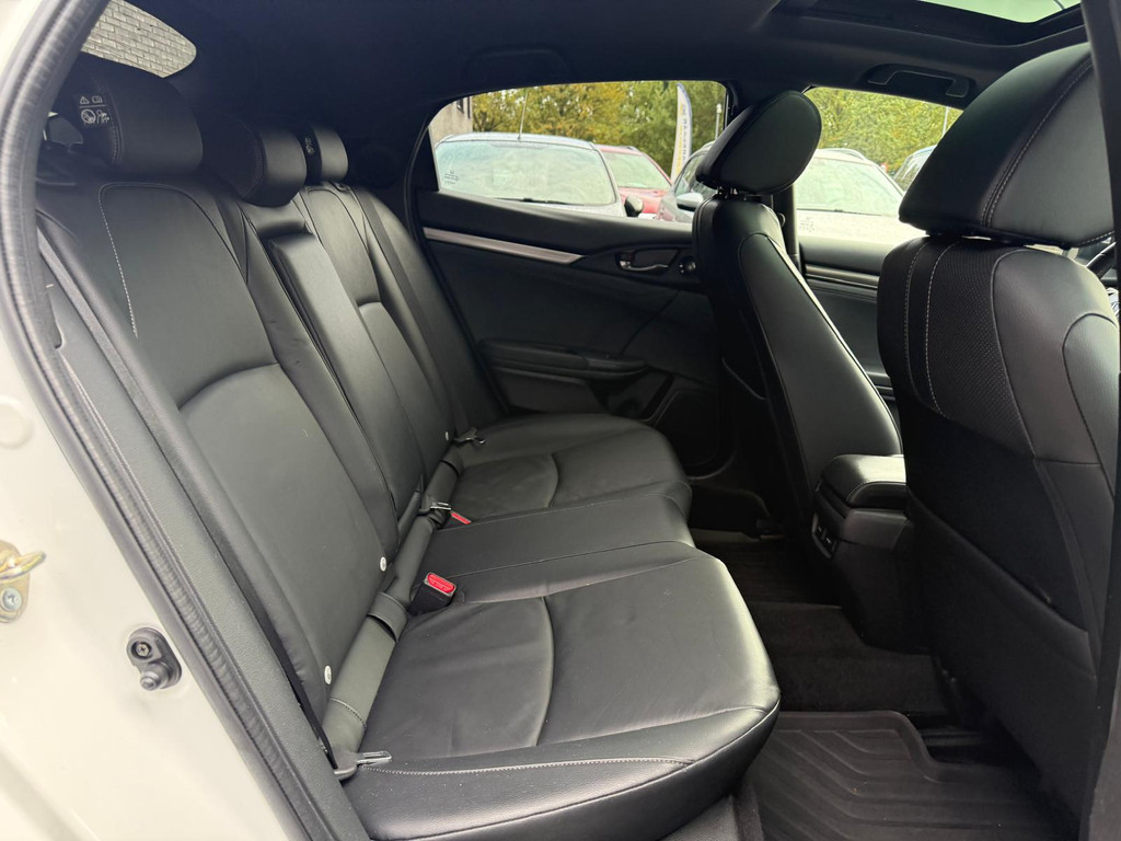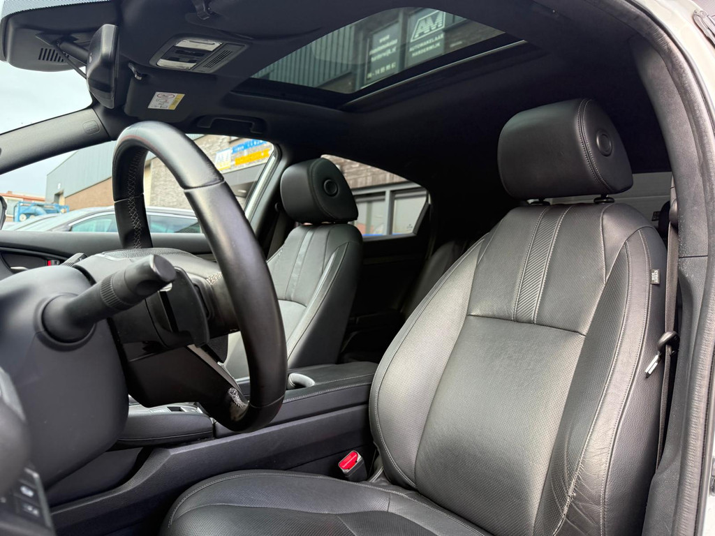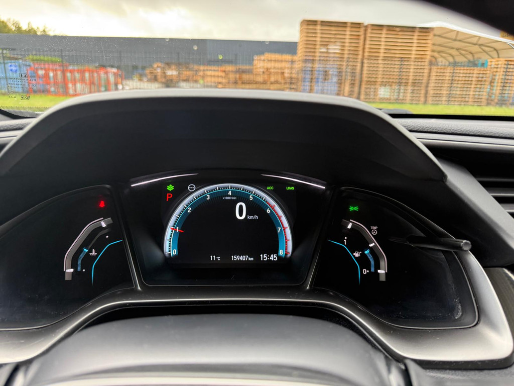 Kinderfietsje niet gezien bij het inparkeren? Dat gebeurt u nooit meer. Daar zorgt de achteruitrijcamera wel voor! Adaptive cruise control houdt de ingestelde snelheid vast en houdt automatisch afstand tot uw voorligger. De geluidskwaliteit aan boord is 'next level' dankzij het high performance audiosysteem. Selecteer uw reisbestemming en het full map navigatiesysteem brengt u snel waar u moet zijn. Aan boord van deze Honda Civic is een achteropkomend verkeer waarschuwing voor extra veiligheid. Wat u ook in deze auto kunt vinden zijn electronic climate control, schakelpaddles aan het stuur, DAB ontvangst, regensensor, keyless entry en automatisch dimmende binnenspiegel.