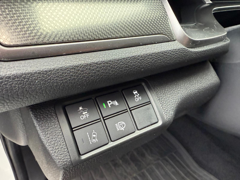 Zoals u mag verwachten van deze Honda Civic is hij uitgerust met een reeks aan actieve veiligheidssystemen. Belangrijk voor uw veiligheid en die van uw passagiers is de verkeersbord-detectie in deze auto. Het Lane-keeping systeem garandeert dat u zich niet onverhoeds buiten de lijnen van de rijstrook begeeft. De sensor van het forward collision warning-systeem registreert permanent de afstand tot voorliggers en grijpt in als een botsing dreigt. De veiligheid van deze auto wordt verder verhoogd door dodehoekdetectie, hill hold functie, brake assist en bandenspanningcontrolesysteem.