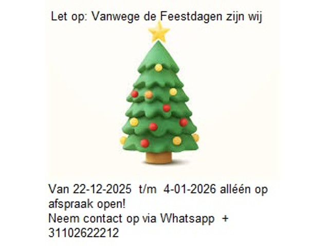 ************ LET OP: IVM de FEESTDAGEN zijn wij vanaf 22 December 2025 t/m 4 Januari 2026 beperkt bereikbaar. U kunt enkel op afspraak komen bezichtigen **************