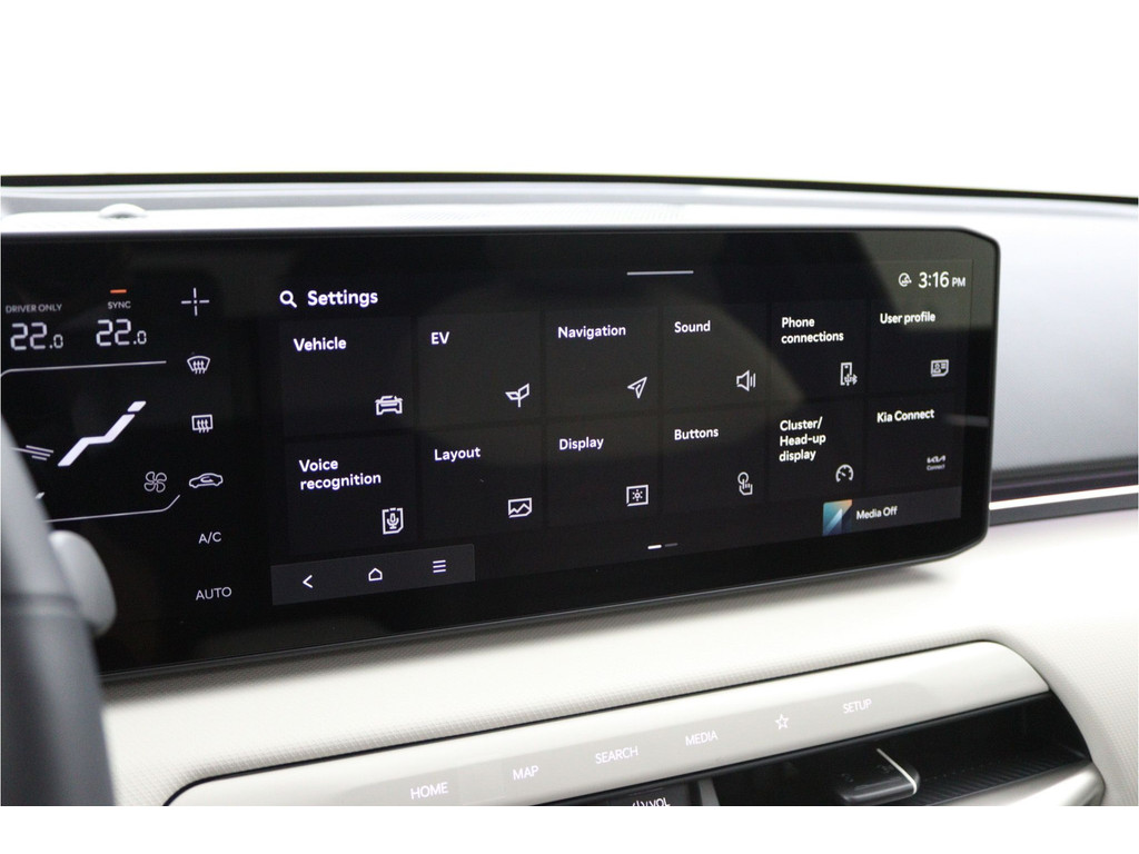 Als bestuurder van deze Kia bent u nooit alleen. U wordt onderweg bijgestaan door technologische hulpmiddelen die samen met u de weg in de gaten houden. Als het nodig is, grijpen ze zelfs in, door te remmen of bij te sturen. Dashboardinfo checken zonder uw ogen van de weg te halen? Dat kan met de head-up display. Een belangrijke bijdrage aan de veiligheid onderweg levert de verkeersbord-detectie. Met het Lane-keeping systeem gaat u nooit onbedoeld over de streep. Ook helpen het dodehoekdetector detectiesysteem, hill hold functie, vermoeidheidsherkenning, autonoom remsysteem en bandenspanningcontrolesysteem, uw rit tot een veilige rit te maken.
