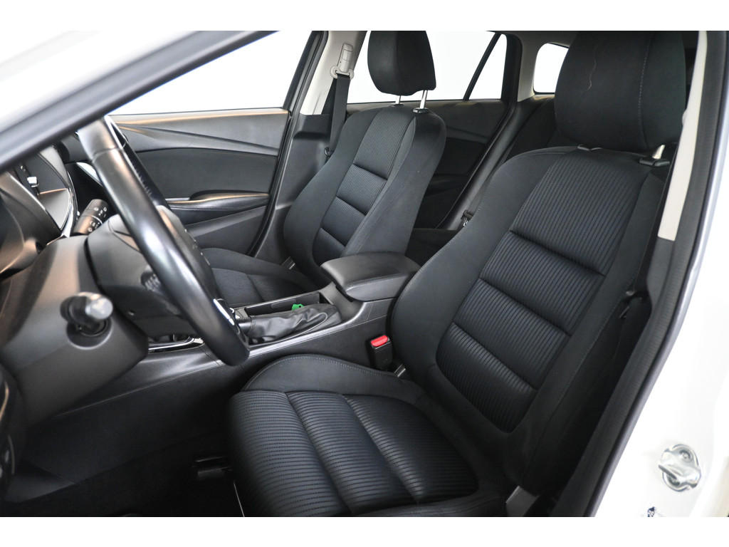 De auto is voorzien van een trekhaak en is een uitstekende caravantrekker. Het bedienen van het audiosysteem vanaf het stuurwiel helpt u om gefocust te blijven op de weg. De automatische airconditioning zorgt onder alle omstandigheden voor een prettige temperatuur. U kunt bij het inparkeren natuurlijk niet aan alle kanten ogen hebben. Daarom is deze Mazda 6 Sportbreak voorzien van parkeersensoren! Het hoort bij een intelligente auto als deze dat hij zelf in staat is om zijn omgeving in de gaten te houden. Dat doet deze Mazda met een automatisch inschakelbare verlichting en een regensensor. Ook cruise control, automatisch dimmende binnenspiegel, centrale deurvergrendeling met afstandsbediening, boordcomputer en verstelbaar stuur zijn aan boord.