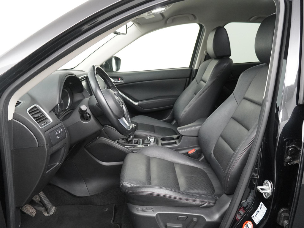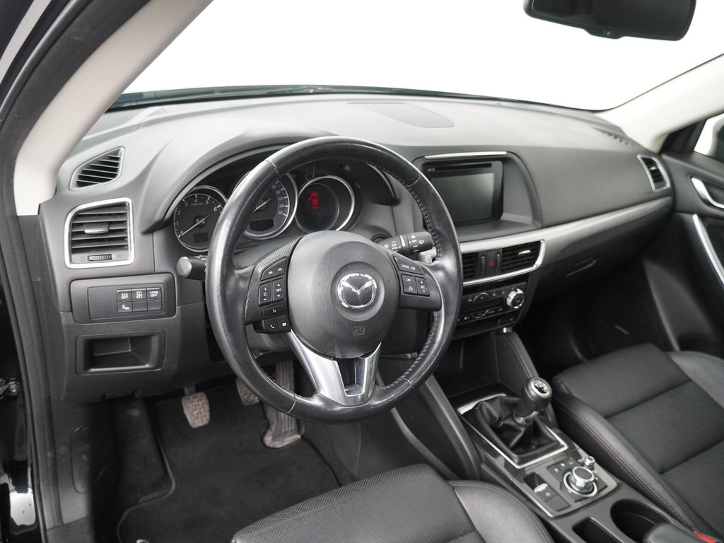 Met een auto als deze Mazda CX-5 komt u absoluut goed voor de dag. De aandrijving komt voor rekening van een benzinemotor en een handgeschakelde zesversnellingsbak. Leren bekleding versterkt de topklasse uitstraling van het interieur. De verwarmbare voorstoelen zijn een weldaad voor rug en schouders. In deze Mazda profiteert u onder andere ook van: 17 inch lichtmetalen velgen, LED koplampen, extra getint glas, LED-achterlichten en verstelbare lendensteunen.
