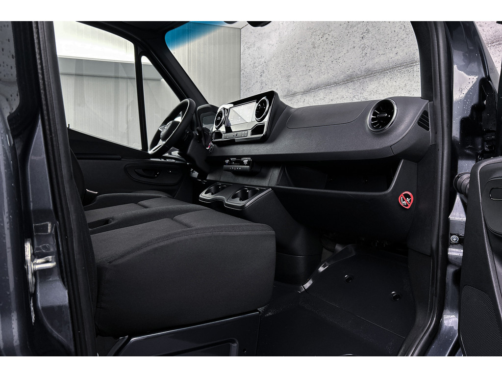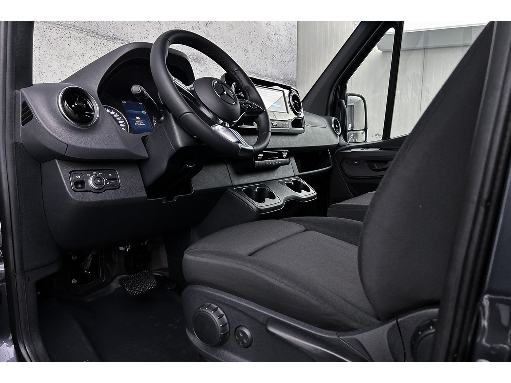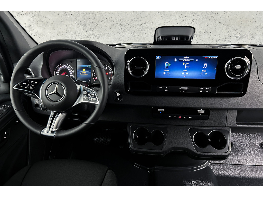 De standkachel verwarmt het interieur voor. Dat betekent meer comfort voor u en minder slijtage voor de auto. Met behulp van de achteruitrijcamera kunt u zo strak inparkeren als u maar wilt! Deze Mercedes-Benz Sprinter is 'connected'. Belangrijke functies worden permanent gemeten en zijn uit te lezen via een speciale app, ook op afstand. Deze auto heeft een ingebouwde WIFI-hotspot. Gamen, googelen, facetimen... zeg het maar! Een andere zender zoeken of het volume wijzigen? Het audiosysteem heeft bediening op het stuur. De uitrusting van deze auto is met WIFI-hotspot, sportstuur met schakelpaddels, DAB+, regensensor, cruise control en airconditioning behoorlijk compleet.