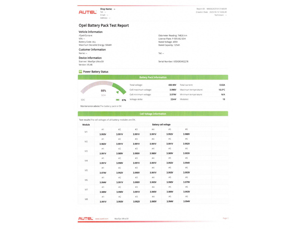 ✔︠SOH test uitgevoerd 88%.