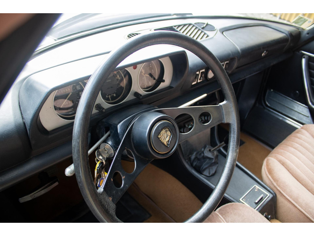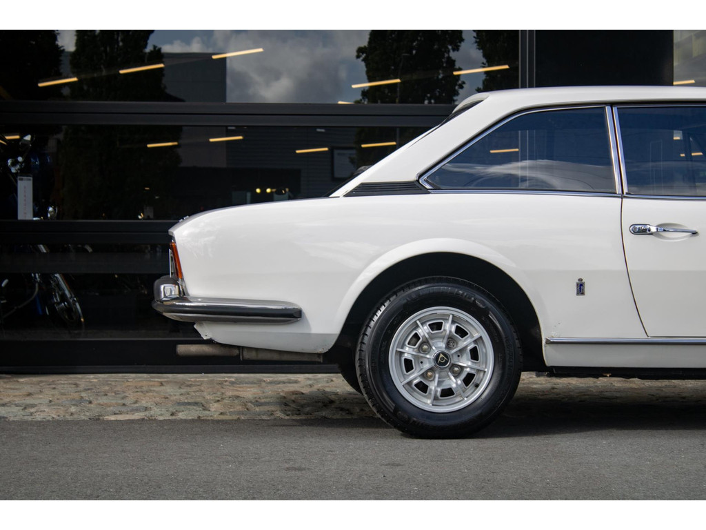 Uitgevoerd met Dunlop sportvelgen en nog steeds voorzien van zijn originele uitstraling, is dit een Peugeot 504 Coupé die zijn authenticiteit heeft behouden — precies wat dit model zo aantrekkelijk maakt.