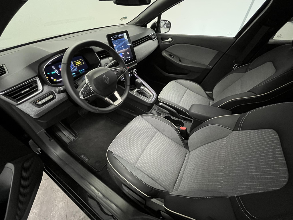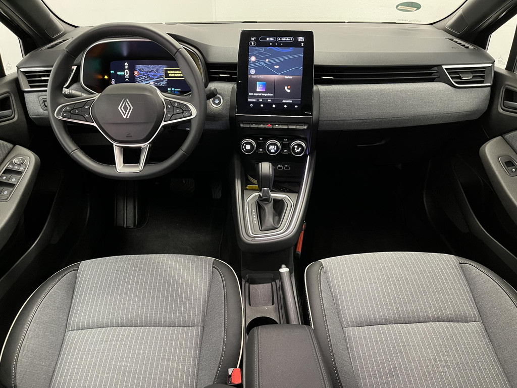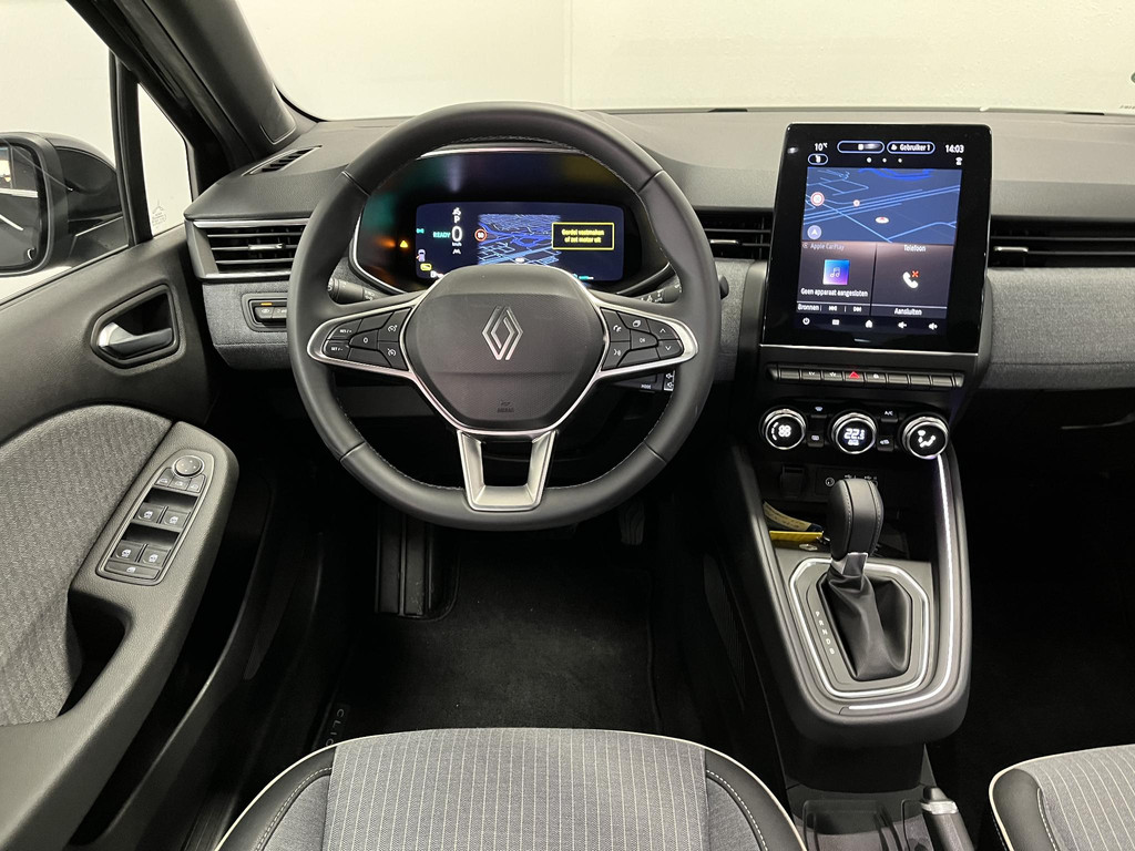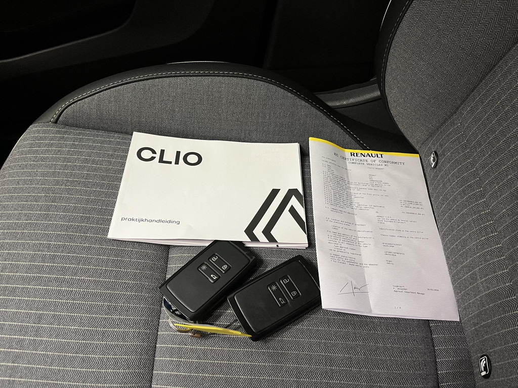 Het digitale dashboard zorgt voor een super functionele display van reisinformatie. Met de achteruitrijcamera ziet u wat er achter de auto gebeurt. Zo rijdt u moeiteloos achteruit. Dankzij Connected Services weet u precies waar uw auto geparkeerd staat. Ook andere functies, zoals bandenspanning en brandstofniveau, zijn via de app altijd onder handbereik. In deze Clio vindt u schakelaars op het stuur om het navigatiesysteem te bedienen en het audiosysteem met DAB-ontvangst. Moet uw smartphone ook even tanken? Bijladen kan supersimpel met de draadloze telefoonlader. Deze auto is voorzien van electronic climate control, regensensor, cruise control, keyless entry, automatisch dimmende binnenspiegel en boordcomputer.