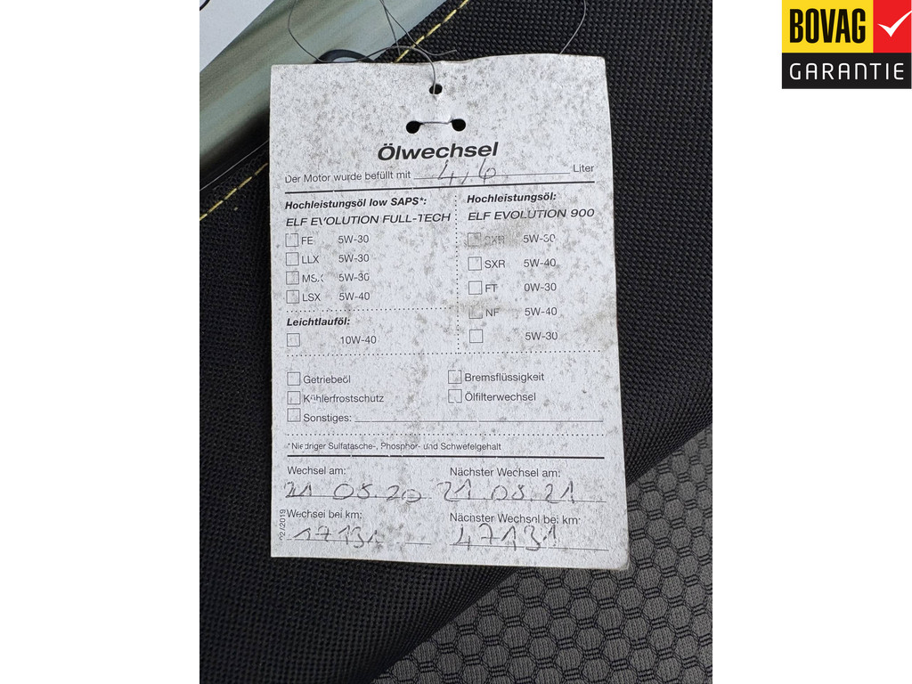 Wij hebben een Grote onderhoudsbeurt uitgevoerd met bougies, lucht- oliefilter + olie vervangen.
