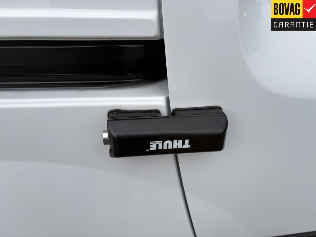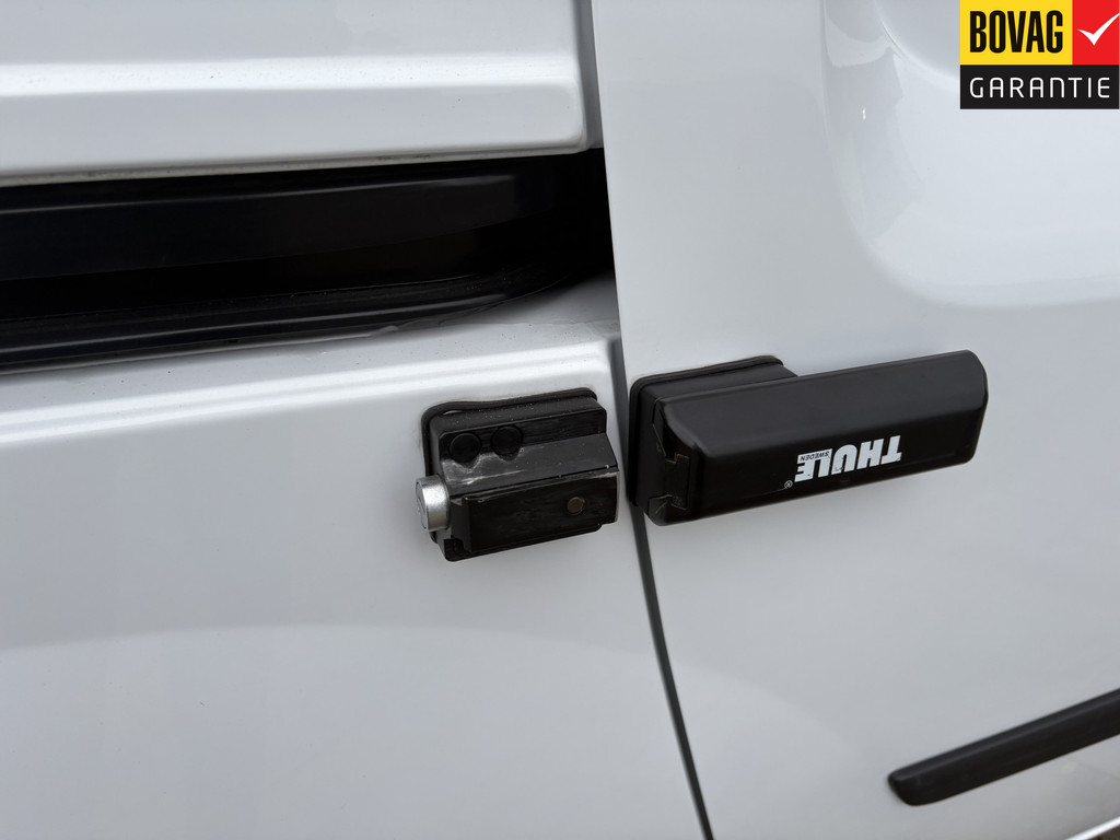 Beveiligingssloten op achterdeuren en zijschuifdeur rechts, en een volledig tussenschot met raam.