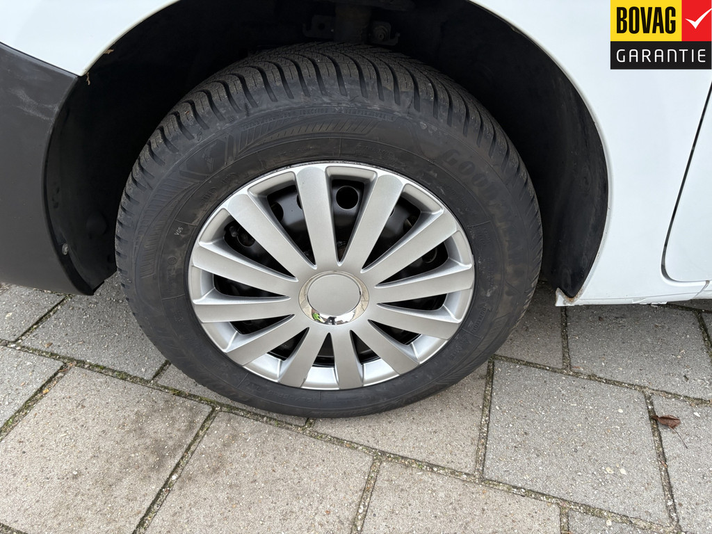 De Renault Bestel staat op goede All season banden, met wieldoppen.
