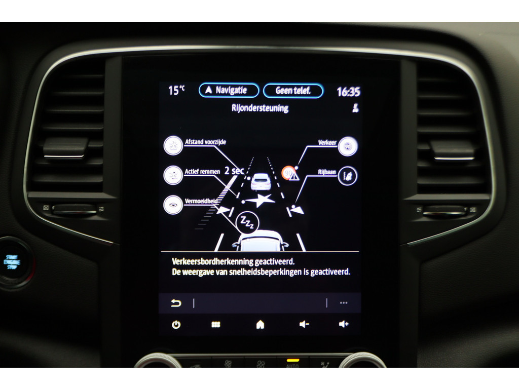 De nieuwste veiligheidssystemen komen in deze Renault Mégane Estate samen. In het instrumentarium laat de verkeersborddetectie de actuele verkeersborden zien. Het Lane-keeping systeem doet precies wat nodig is: waarschuwen en corrigeren bij onbedoelde overschrijding van de rijstrooklijnen. Vermoeidheidsherkenning is een systeem dat met verschillende sensoren tekenen van vermoeidheid bij de chauffeur waarneemt. Deze krijgt tijdig een waarschuwing, wat ongelukken kan voorkomen. Verder is deze auto uitgerust met hill hold functie, autonoom remsysteem en bandenspanningcontrolesysteem.