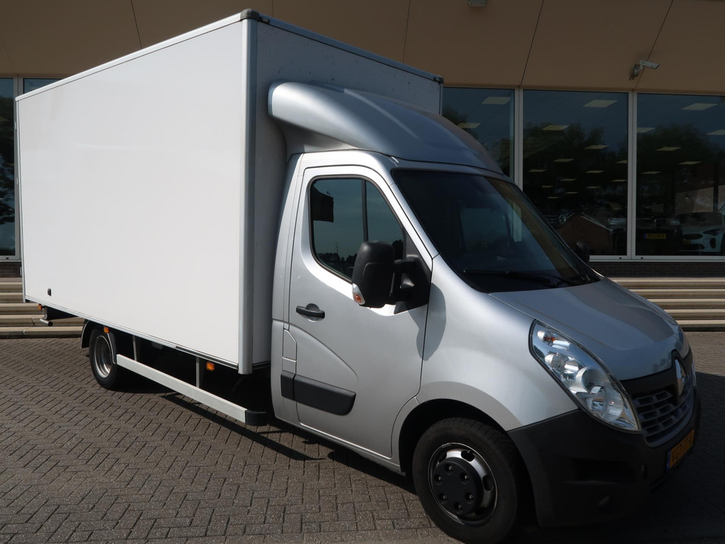 Dubbel lucht bakwagen / meubelbak lengte 4 met de 2.3 DCI 165 PK motor met 6 versnellingen, 433 cm wielbasis, Bijzonder ruime bak: 450 laadlengte, 225 breedte en 235 cm hoogte. Teruggekeurd naar 3500 kg dus gewoon B-rijbewijs, Bouwjaar 08-2020, Zilvergrijze cabine met witte meubelbak met zilvergrijze omlijsting, Luxe uitvoering met Touchs-screen, Navigatie, DAB+ digitale radio, Android Auto, Cruise control, Climate control, Elektrische ramen en spiegels, Bijrijdersbank dus 3 zits, Bluetooth telefoon met audiostreaming, Geveerde bestuurdersstoel, Volwaardig reservewiel, Opstap achter, Prijs is exclusief BTW,