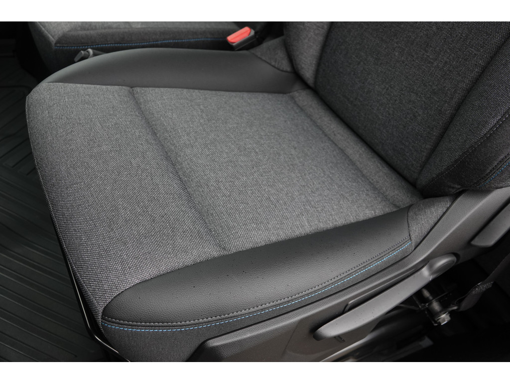 ⢠Stoelbekleding: Stof/Leder met blauw stiksel