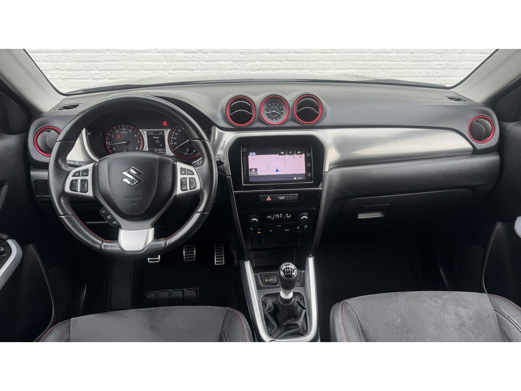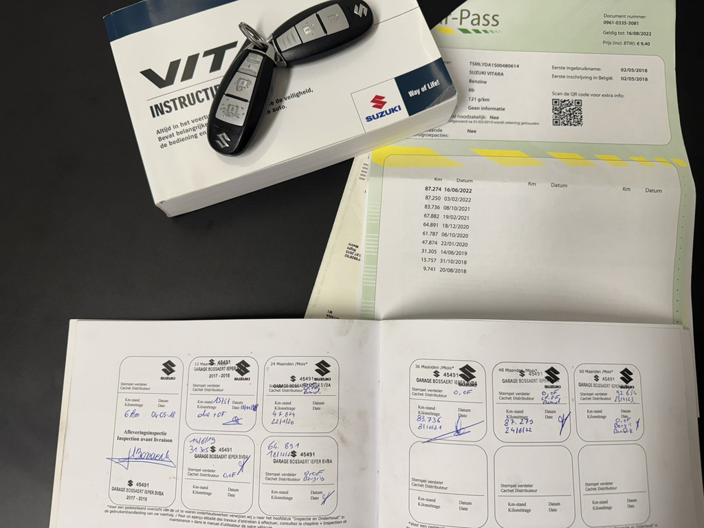 Keurig nette en compleet uitgevoerde Vitara, oa voorzien van half lederen bekleding, adaptieve cruise controle. climate control, verwarmde voorstoelen, Apple/Android, parkeer camera en sensoren en meer De grijze metallic lak ziet er chique uit en icm de zwarte accenten en donkere velgen maakt dit deze SUV ook stoer. Er zit een afneembare trekhaak onder waarmee maar liefst 1200kg aanhanger gewicht getrokken mag worden. Zowel optisch als technisch in zeer goede staat, het laatst bekende onderhoud was bij 97.654 kilometer.