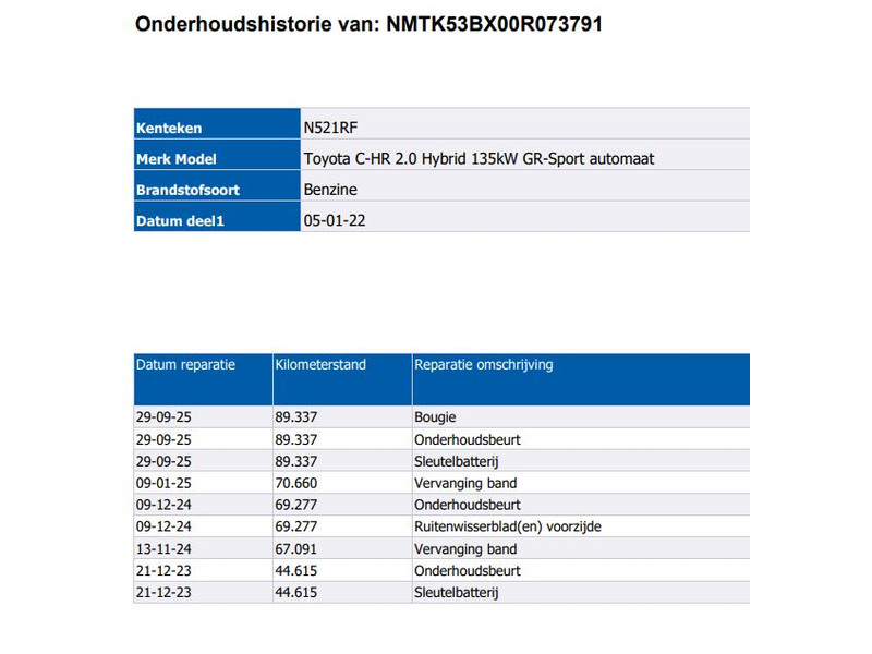 ✓ Onderhoud verleden aanwezig