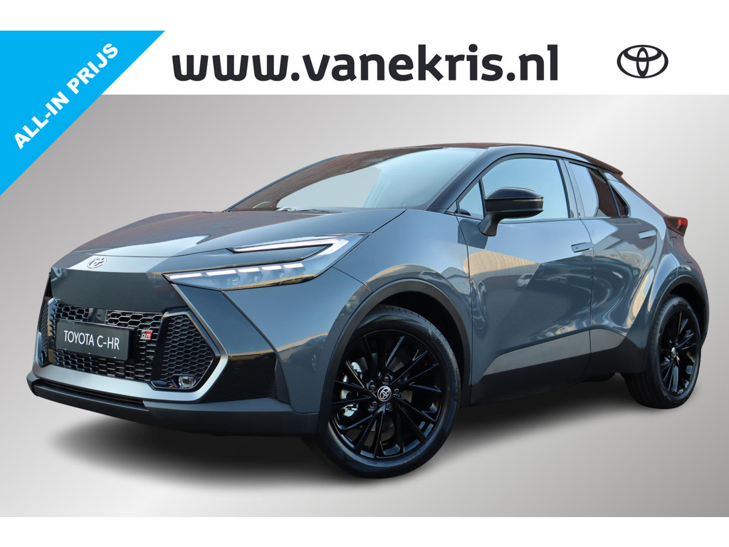 Deze Toyota C-HR Plug-in Hybrid 220 GR Sport is in de kleur "Storm Grey" met zwart dak.  De C-HR is uitgevoerd met opties en extra's zoals: mooie GR Sport afwerkingen in het exterieur en interieur, intelligente parkeersensoren met remfunctie voor en achter, Blind Spot Monitor, stuur- en stoelverwarming, JBL audiosysteem, navigatie, achteruitrijcamera en nog veel meer!