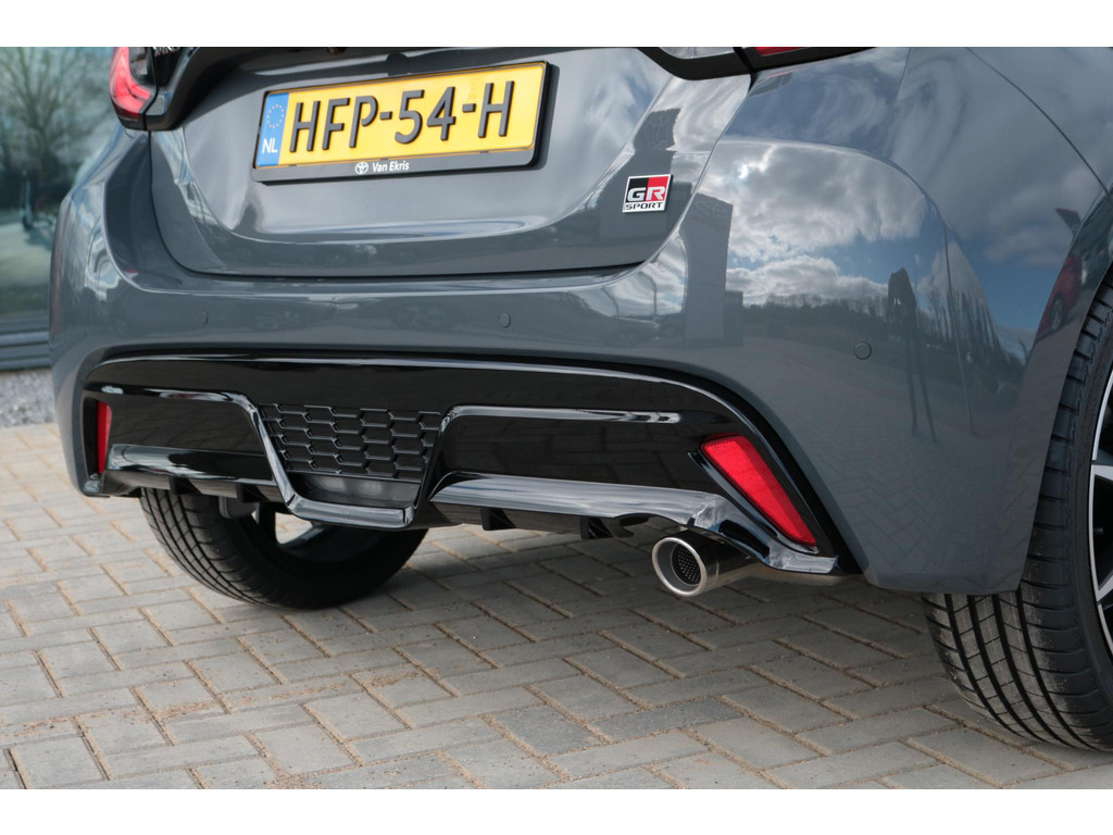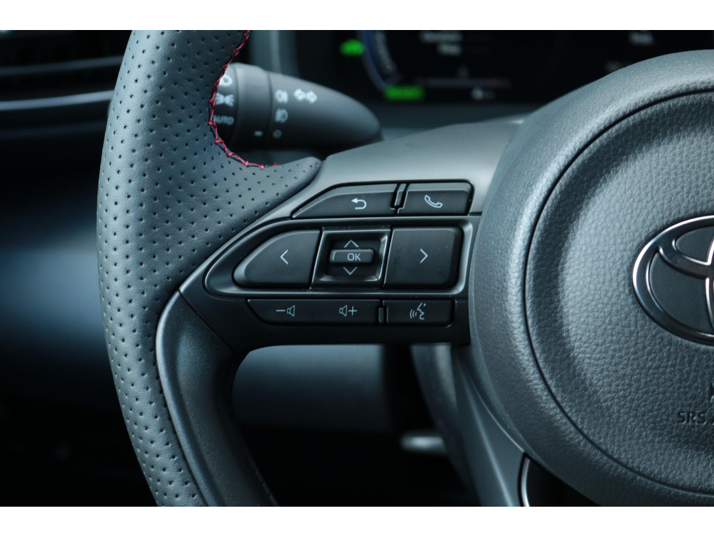 Deze super gave Toyota Yaris Hybrid 130 in de sportieve GR-Sport uitvoering. Door het mooie contrast tussen de kleur Storm Gray metallic en het zwarte dak ziet de Yaris er erg strak uit! In combinatie met het GR-Sport Plus Pack zit de Yaris vol met leuke opties zoals: Panorama dak, Stoelverwarming, Stuurverwarming, Draadloos Apple Carplay & Android Auto, Parkeersensoren met remfunctie, Blind Spot Monitor, Automatisch inklapbare buitenspiegels, Op afstand verwarmen en verkoelen met de Toyota app, 18 inch lichtmetalen velgen, Digitaal instrumentenpaneel, Half lederen bekleding, Donkere hemelbekleding en nog veel meer!