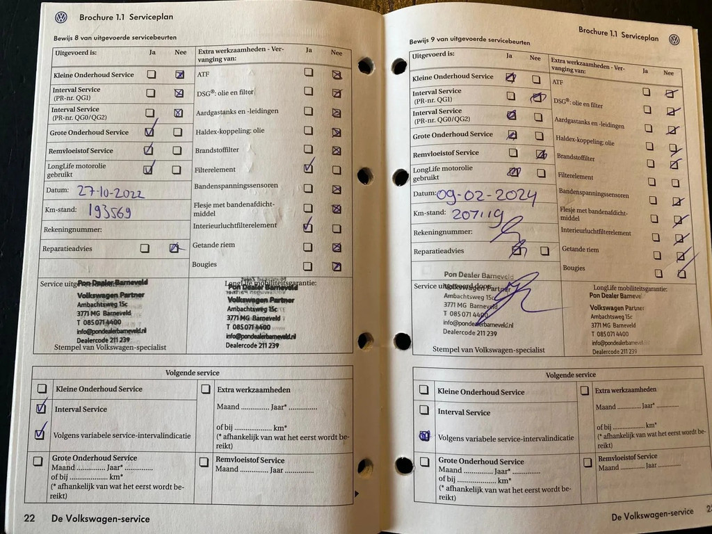 Vw-dealer onderhouden bij Pouw Berneveld, bij 207.000 km nog groot onderhoud gehad.