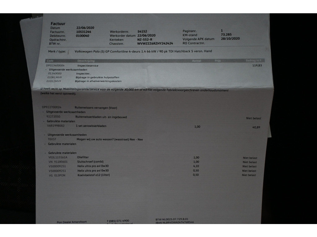 • Auto wordt afgeleverd met een beurt volgens serviceplan.