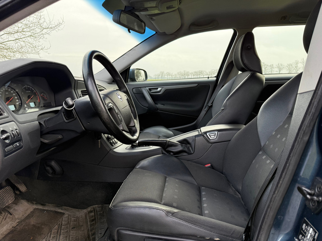 Een vijfcilinder motor en een automatische transmissie zorgen samen voor een snelle en comfortabele rijervaring. Deze Volvo V70 heeft verwarmbare voorstoelen, voor zowel bestuurder als bijrijder. Bij de uitrusting van deze Volvo horen onder meer halflederen bekleding, dakrails, getint glas, in delen neerklapbare achterbank en hoofdsteunen.